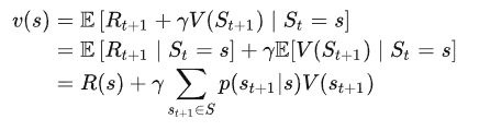 从该状态s开始的回报的期望, 它表达的是某一状态的长期价值, 记为\(V(s)\), 表达式为:
