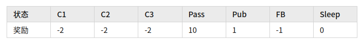 在这个马尔可夫过程中, 各状态奖励为: