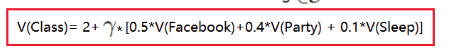 折扣因子记为 \(\gamma \in [0,1]\), 当我们用它来计算未来收益时会乘以折扣因子, 比如在Class 1 进入facebook和进入 Class 2后虽然当前的收益是相同的, 但未来收益是不同的. 引入折扣因子的原因: