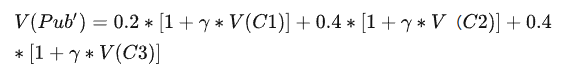 Pub状态时,有0.2的概率进入C1,0.4的概率进入到C2,0.4概率进入C3,因此