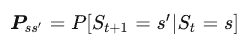我们对当前状态和后续状态分别记为\(s, s’\), 从当前状态转移到后续状态的转移概率定义为: